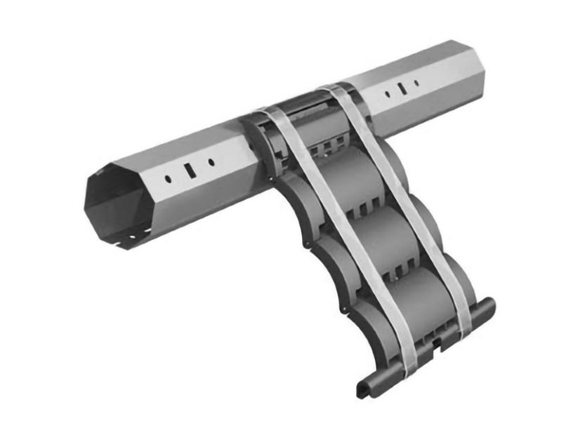 Ригель блокирующий RGM2/Q 2-секционный. Секции — полиамид, оси — нержавеющая сталь, пружины — пластик, применяется для подъема полотна и блокирования его в опущенном состоянии. Для роллет с массой полотна до 35 кг или электроприводом с крутящим моментом до 30 Nm. Для профилей AR/377, AR/39, AR/40, ARH/40, AR/41, AR/41/T, AR/45, AR/52, AR/555, AR/55m, AER44/S, AER44m/S, PD/39N, PD/45N, PD/55mN.